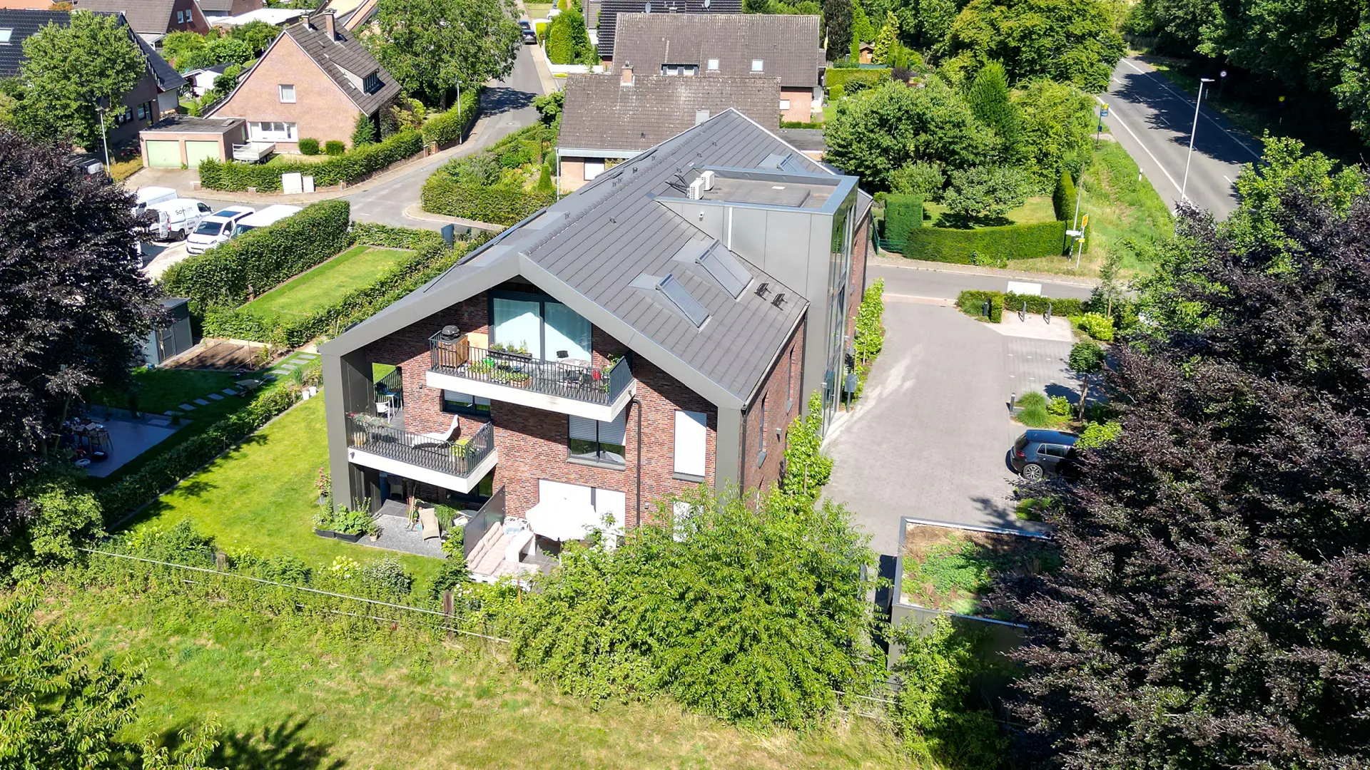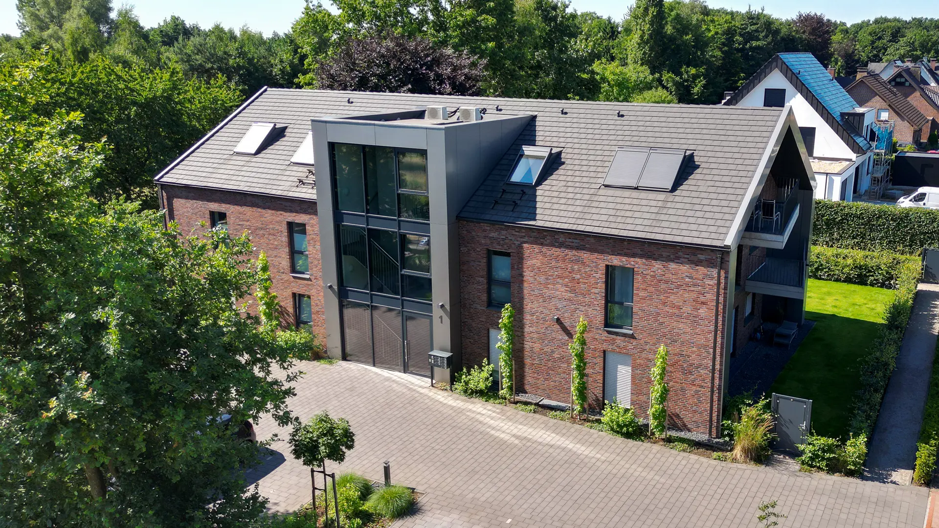 Im Wes­ten von Bocholt ist in ruhi­ger, gewach­se­ner Nach­bar­schaft ein archi­tek­to­nisch hoch­wer­ti­ges Mehr­fa­mi­li­en­haus ent­stan­den, das gestal­te­ri­sche Klar­heit, regio­na­le Iden­ti­tät und nach­hal­ti­ge Bau­wei­se ver­eint. Mit sie­ben moder­nen Wohn­ein­hei­ten steht das Pro­jekt bei­spiel­haft für inner­städ­ti­schen Woh­nungs­bau, der Funk­ti­on, Form und Ener­gie­ef­fi­zi­enz zu einem stim­mi­gen Gesamt­kon­zept ver­bin­det. Die Pla­nung und Umset­zung erfolg­ten durch STUDIO S Archi­tek­ten in allen Leis­tungs­pha­sen – von der Bebau­ungs­plan­än­de­rung bis zur Bau­über­wa­chung. So konn­te sicher­ge­stellt wer­den, dass sich das Gebäu­de har­mo­nisch in das Umfeld ein­fügt und den­noch eine eigen­stän­di­ge archi­tek­to­ni­sche Spra­che spricht.